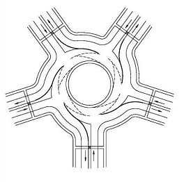 Vijftakrotonde met enkelbaans toeritten