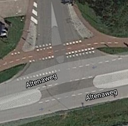 Een voorbeeld van een veel voorkomende T-splitsing staat hiernaast afgebeeld. Wanneer op een T-splitsing de doorgaande weg voorrangsweg is, dan is het vaak lastig om vanuit de zijtak de doorgaande weg op te rijden vanwege de hoge snelheid op de doorgaande weg. Het linksaf buigend verkeer op de doorgaande weg moet wachten op verkeer uit tegenovergestelde richting. Het verkeer dat van de zijtak linksaf de doorgaande weg op wil rijden moet wachten op verkeer van links én van rechts. Dit maakt het lastig om over te steken en bij drukte leidt dit tot wachtrijen.